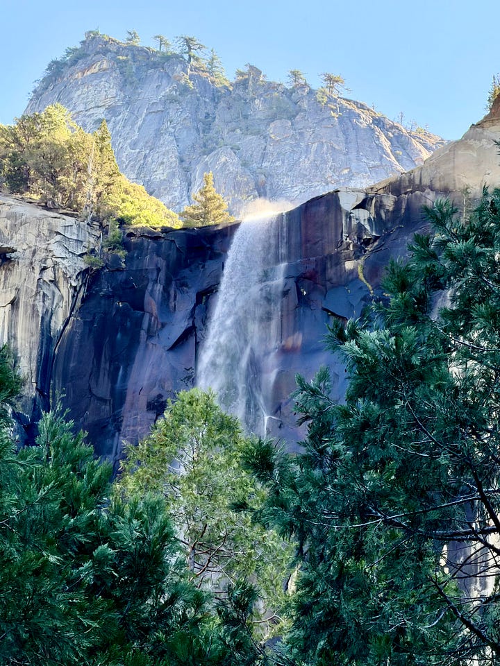 When JFran and I went, we camped in the Valley and never left. R and I started out in the valley — it’s so dramatic and she hadn’t been in 10 years. We camped at Crane Flat, a short drive away, and first we checked out Bridalveil Fall which JFran and I didn’t get to see up close: