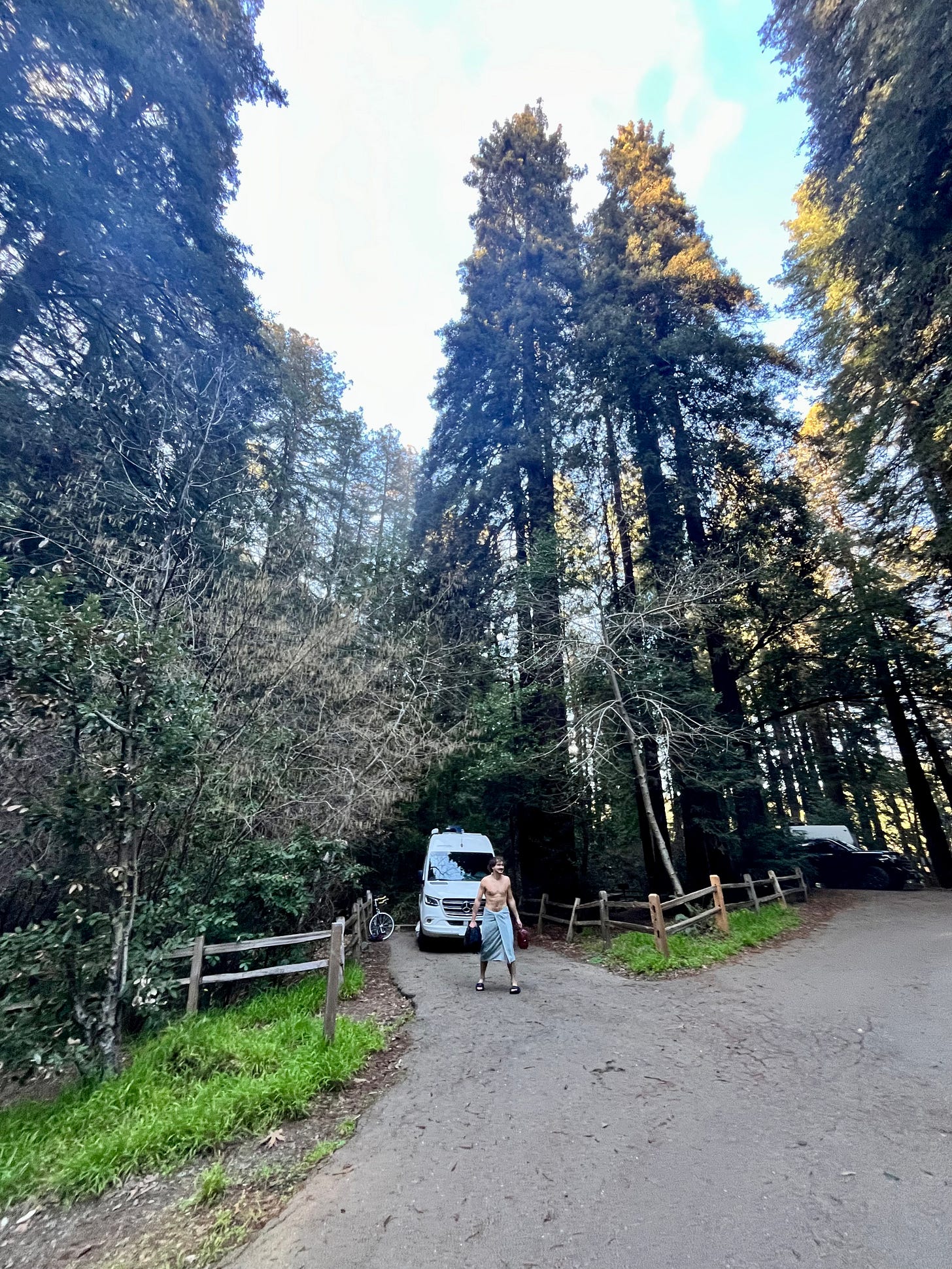 For the Amazing Spider-Van’s inaugural voyage, we went back to Highway 1, heading north to Russian Gulch State Park. They weren’t open for the season yet so we found a place on HipCamp (think Airbnb for campsites). A mile down a dirt road, we pulled into a sweet site, and while we were admiring the flushing toilets and hot showers, a big dually pickup pulled in.