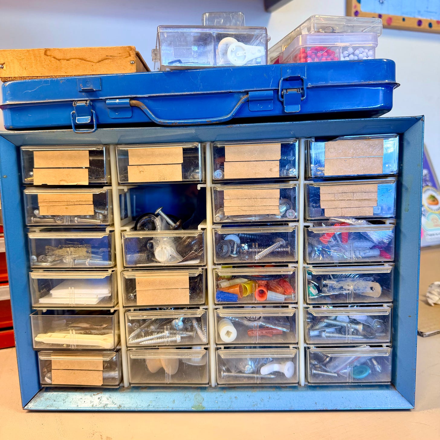 I have no idea where anything else is, so if I need more than the hero drawer stuffed with a box cutter, duct tape, and my favorite Phillips screwdriver, I’m off on a voyage of discovery.