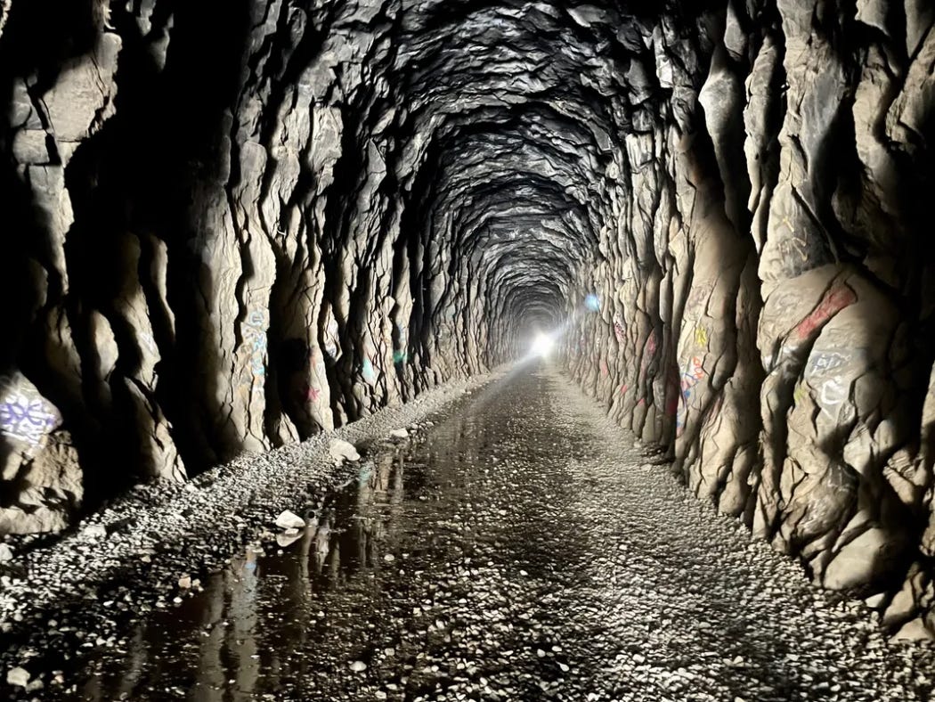 The most formidable tunnel was this one, #6. The length of five football fields, it took 15 months to complete, carved by hand through granite and snow by Chinese laborers: