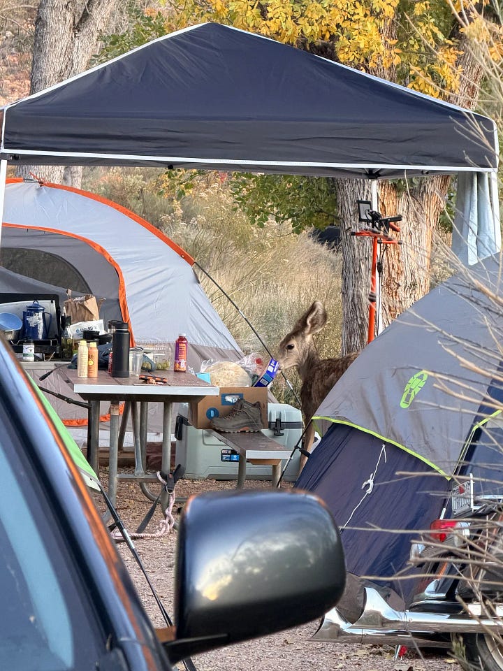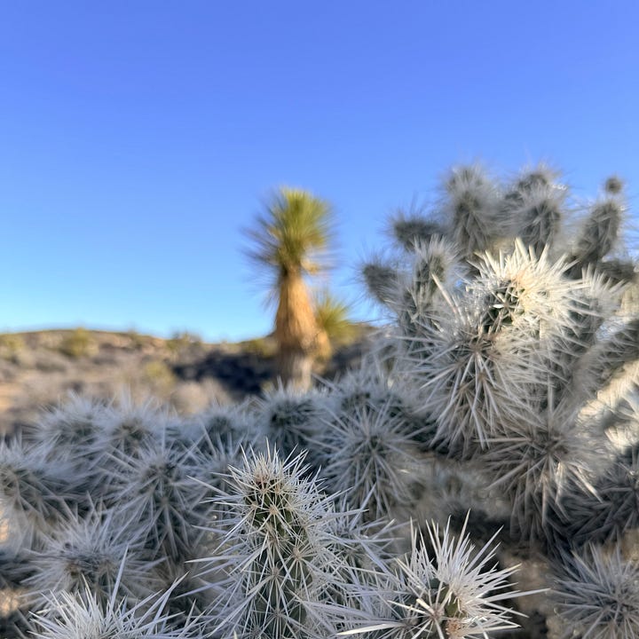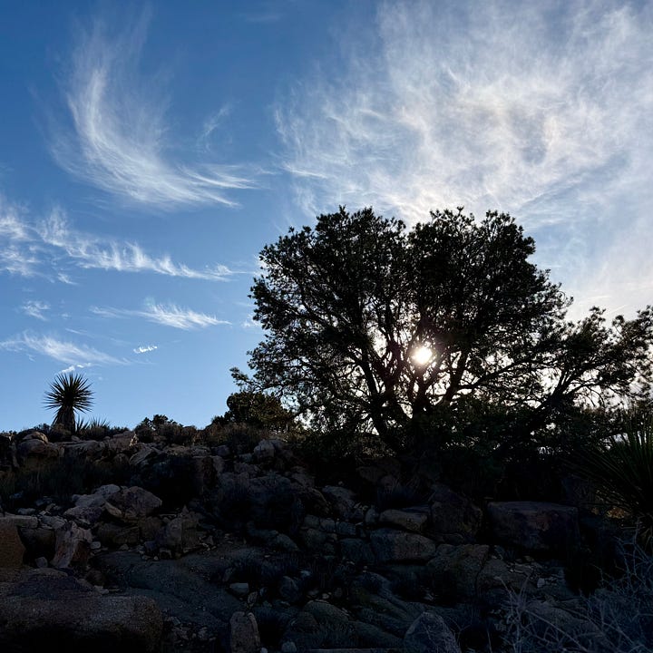 Walking back to the van, a white dot bobbed frenetically ahead of me down the road — a jackrabbit didn’t want any part of me. In the desert, creatures roam in the space between night and day.1